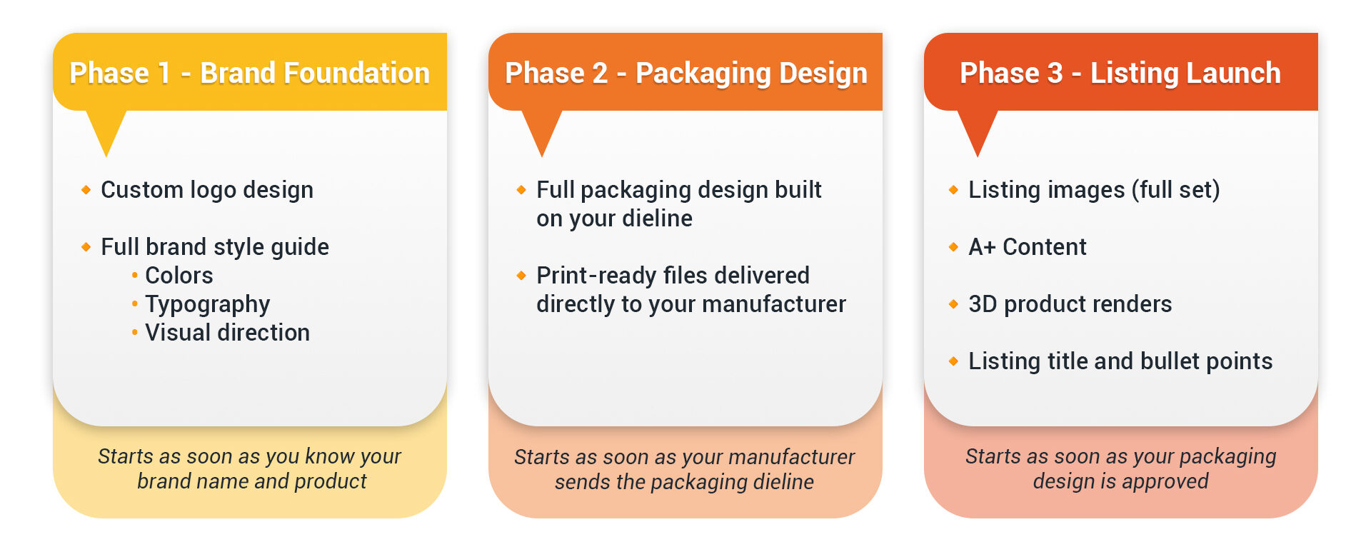 As an Accelerator member, you get access to our Premium Package with one key advantage: you can start before your packaging dieline is ready. We work at your rhythm, not ours.