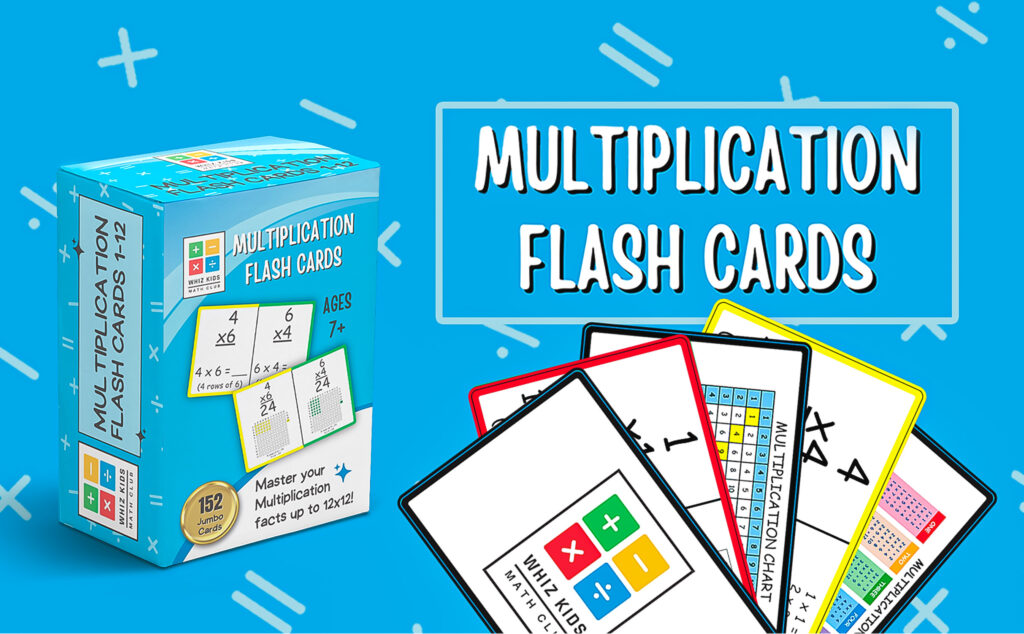 The front layout emphasizes the key learning promise — “Master your multiplication facts up to 12x12!” — supported by clear visuals of the cards themselves.