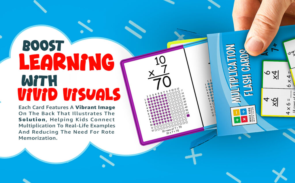 - ENHANCED VISUAL LEARNING – Each card features a vivid image on the back to visually demonstrate the solution, helping students grasp the concept of multiplication and connect it to real-world examples, reducing reliance on memorization.