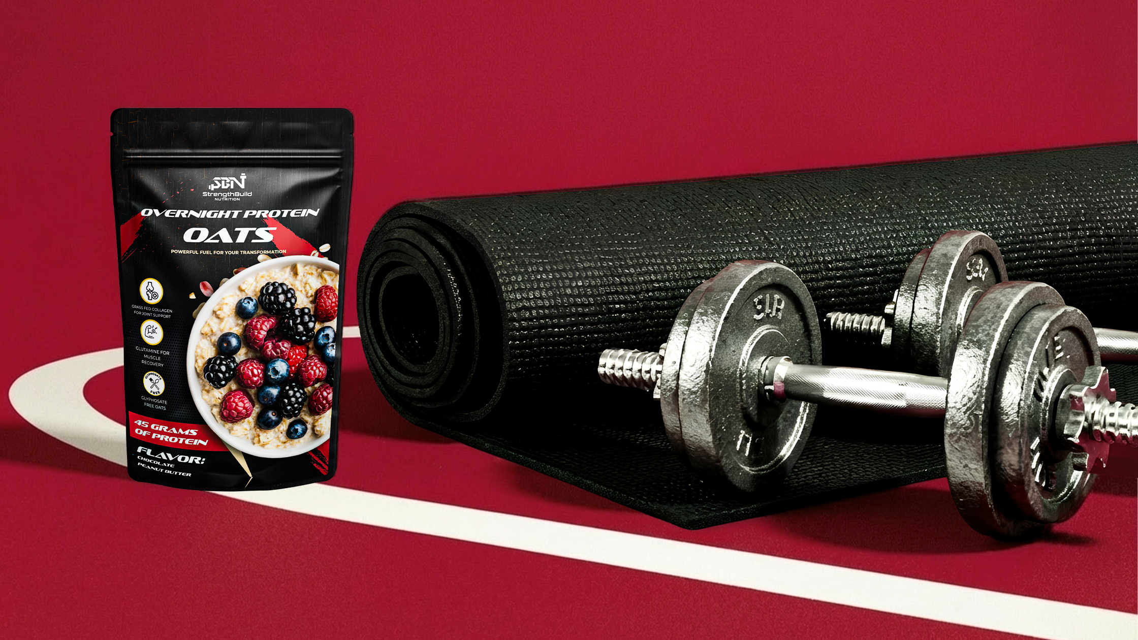 For StrengthBuild, we developed a performance-driven image stack designed to match the intensity of the brand while simplifying complex nutritional benefits. Each visual isolates a single conversion trigger—45g protein, balanced macros, 30-second prep, slow-release carbs, premium ingredients—so shoppers can scan and understand value instantly.